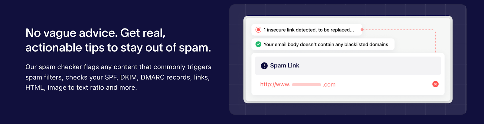 When in doubt, run your message through a spam test before sending. MailReach’s built-in content checks make it easy to catch spammy content early.