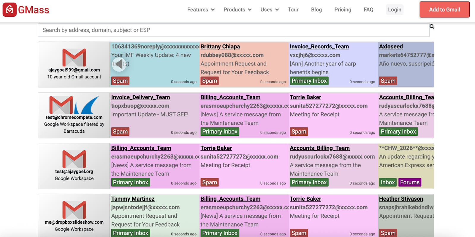 The GMass Email Deliverability Tester provides focused Gmail deliverability testing and tab classification checks. It reports where emails land in Gmail (such as Primary, Promotions, Updates, or Spam), making it useful for Google Workspace administrators and marketers who want to observe Gmail-specific placement.