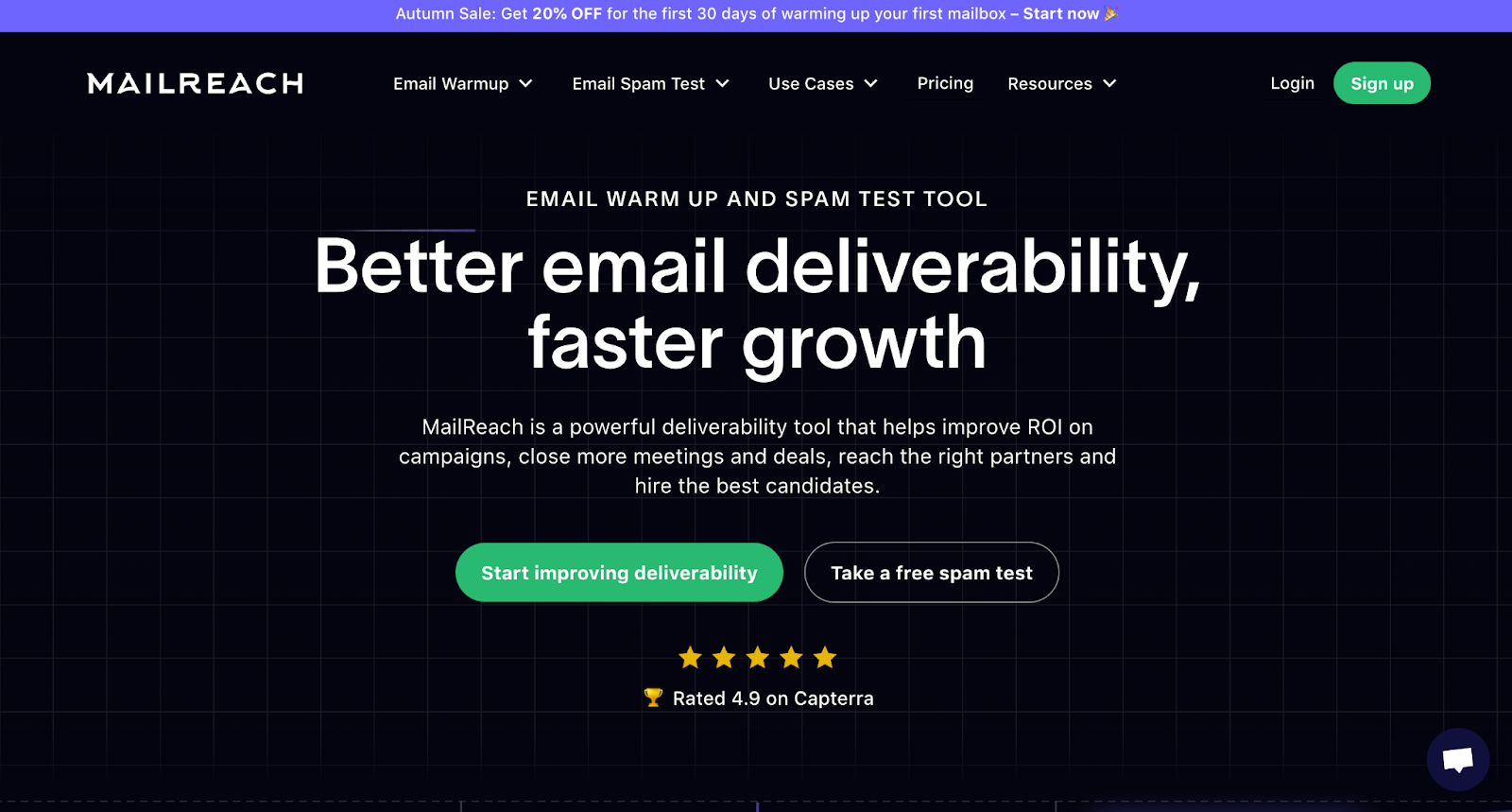 MailReach est une plateforme dédiée au réchauffement des e-mails qui améliore la délivrabilité des campagnes de prospection B2B à froid. Elle aide les équipes à améliorer le placement dans les boîtes de réception en générant des signaux d'engagement cohérents d'une boîte de réception à l'autre et en fournissant une visibilité sur la délivrabilité basée sur les résultats, tels que les résultats de placement dans les boîtes de réception et la visibilité des listes noires au niveau DNS.