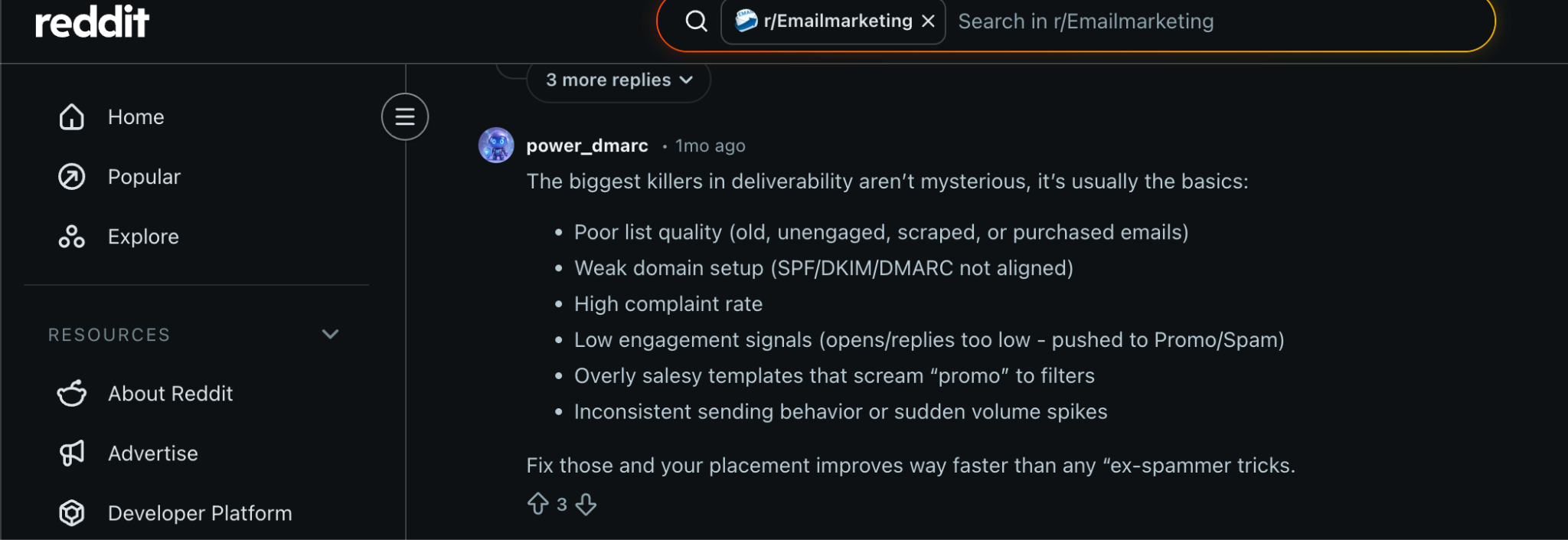 In a Reddit post, marketers highlight that overly “salesy” or generic templates can contribute to spam folder placement even with the right technical setup in place.